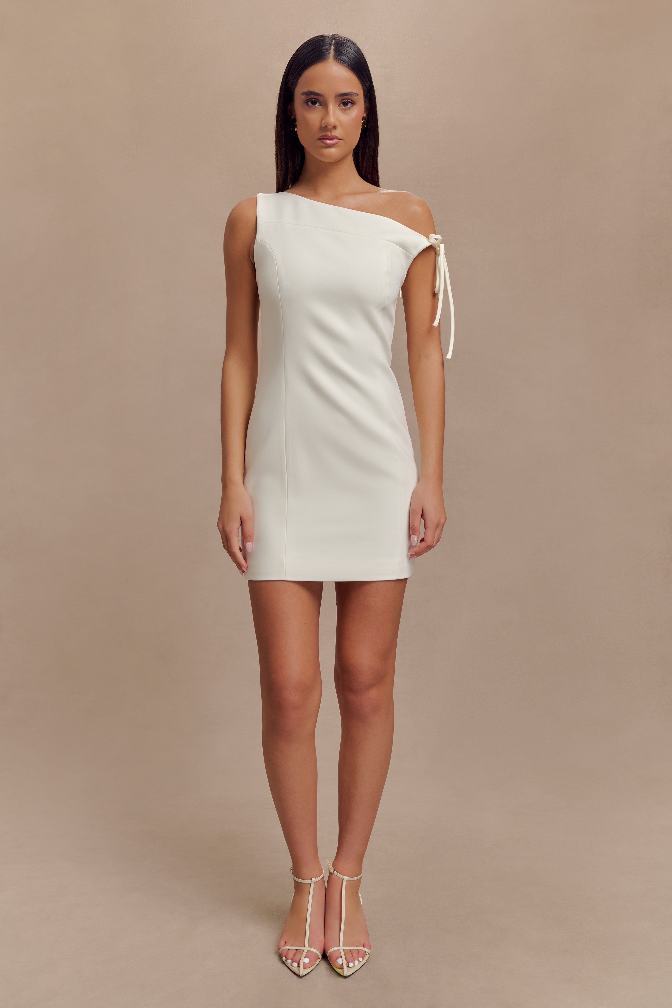 The BAKER Suiting Off Shoulder Dress is a perfect blend of modern sophistication and timeless elegance. This mini dress features an asymmetrical neckline and a drop shoulder design, highlighted by a chic shoulder tie detail for added flair. The contour panel lines create a flattering silhouette, while the side zip closure ensures a seamless fit. With its mini length, the Baker dress offers a stylish and polished look, ideal for any upscale event or evening out.