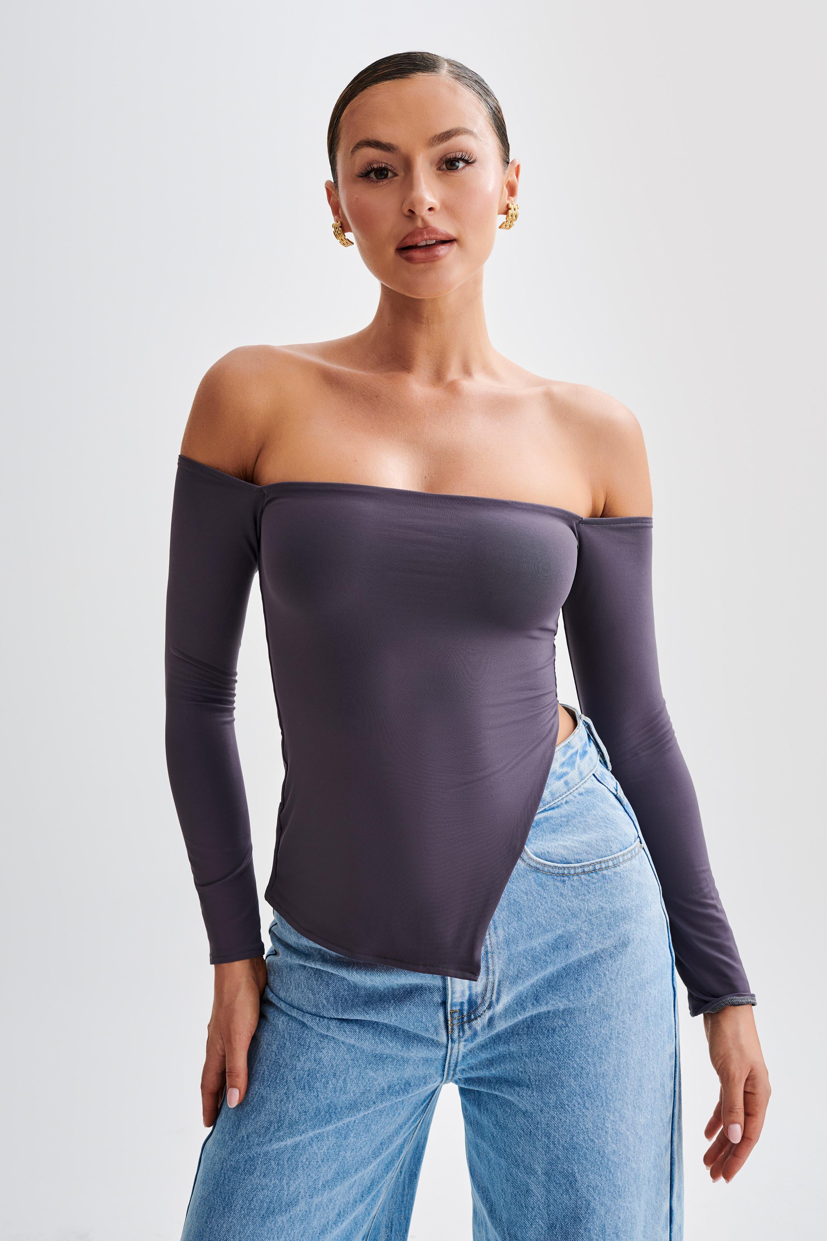 CARMEN is a long-sleeved longline top with an off-shoulder neckline and asymmetrical hem. A fairly low back and slight side cutouts reveal flashes of skin. The off-shoulder neckline and bodycon fit give it a classic feminine feel that’s stylishly versatile. Fresh, comfortable, and perfect for both day and night wear, this top is the kind to never go out of style.