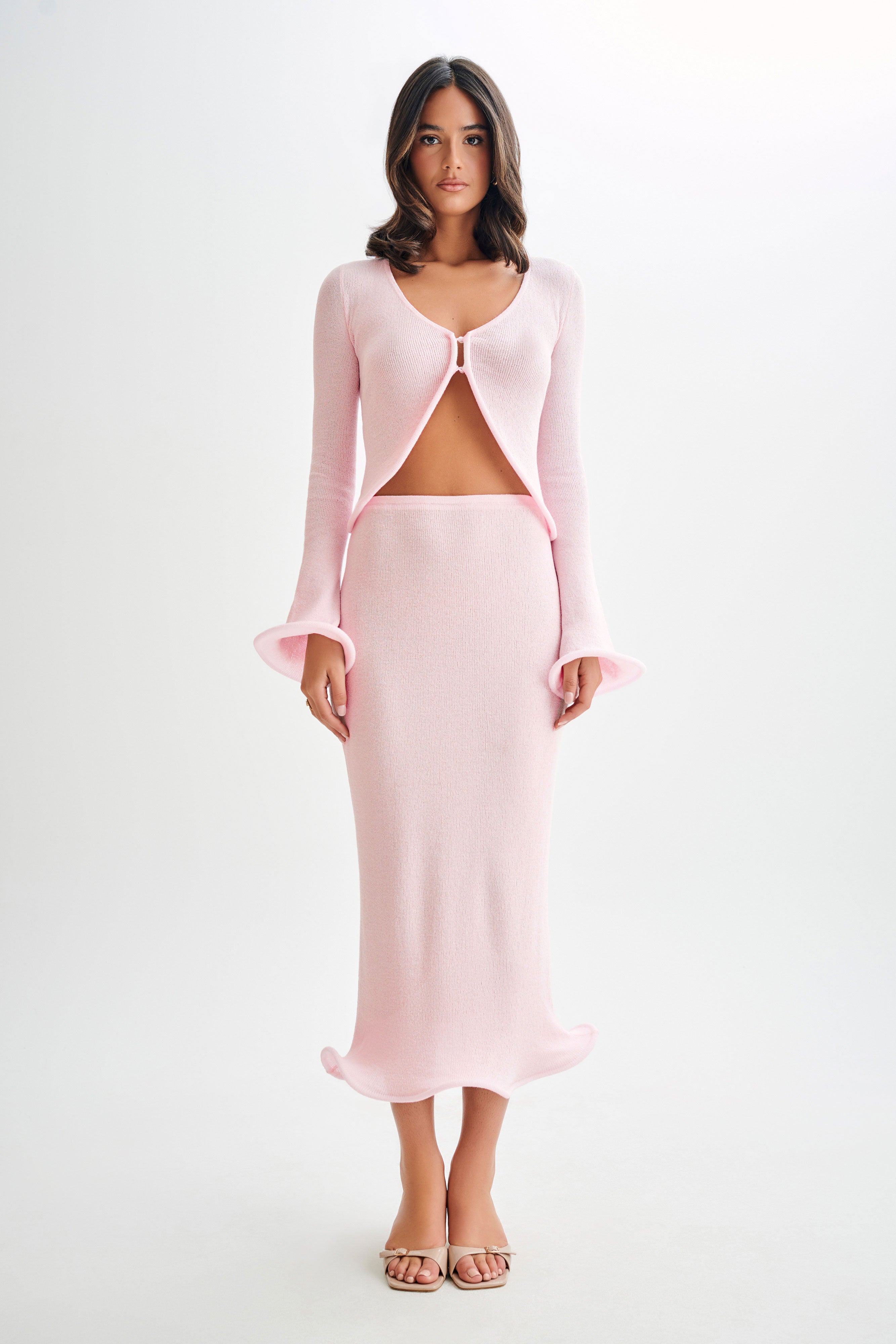 The GIGI Knit Midi Skirt is the perfect blend of comfort and elegance. This high-waisted skirt features an elastic waist for a comfortable and flattering fit. Its unlined knit design ensures a lightweight feel, while the midi length with a wire ripple hem adds a unique and stylish touch. Pair it with the Gigi Long Sleeve Knit Top for a coordinated and chic ensemble that's perfect for any occasion.